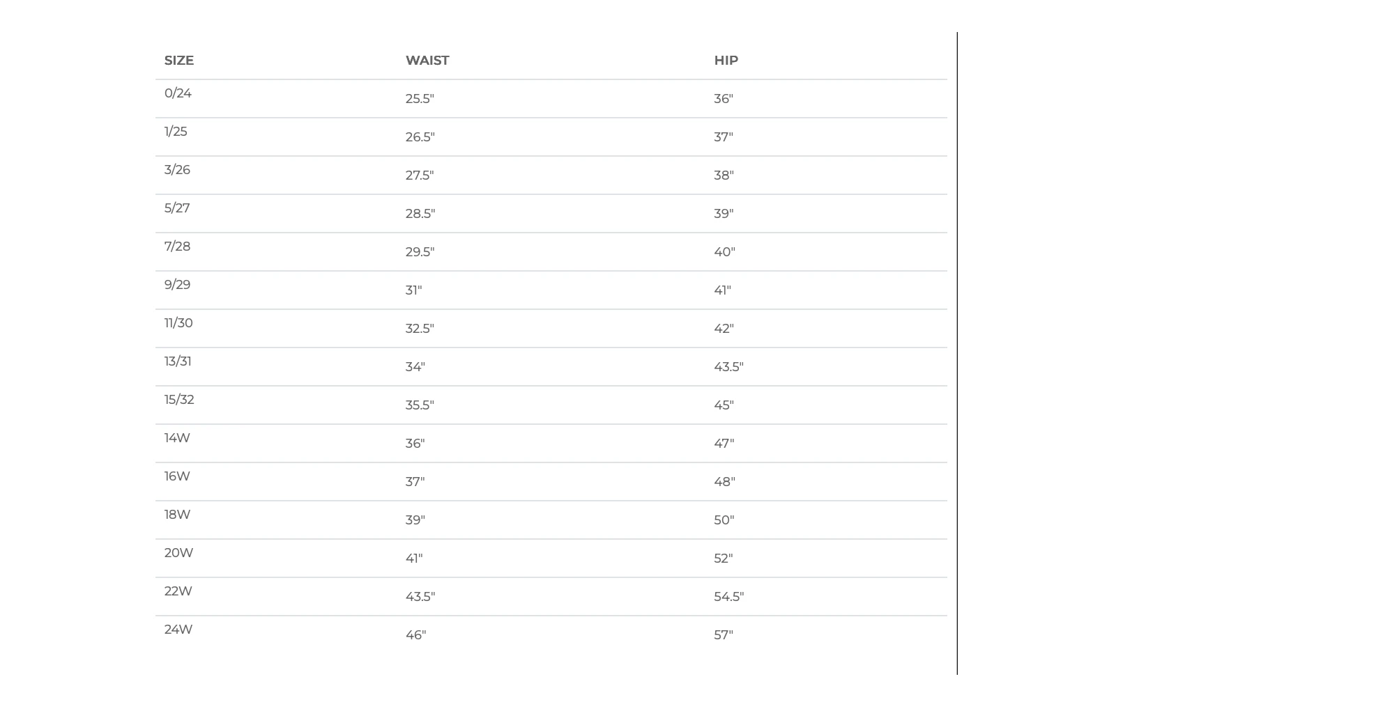 - Sizes 0/24-15/32: